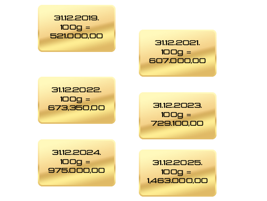 Investiciono zlato oslobodjeno je poreza na dodatu vrednost. ( PDV = 0 % ).